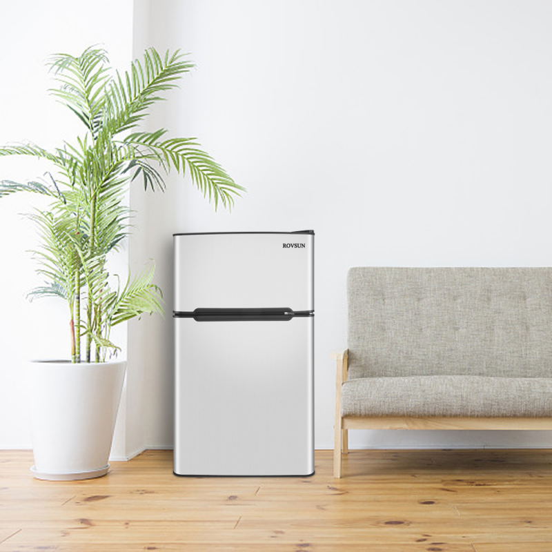 这款小型冰箱结合了现代风格和先进的制冷技术。它以环境可持续的方式处理冷藏食品。圆滑的设计适合任何家庭,并与各种装饰方案融为一体。这款迷你冰箱和冰柜的总容量为3.2立方英尺。智能的室内设计功能使每立方英寸都变得物有所值。可以轻松调节两个内部搁架,以适应您的即时需求,而门上的搁板和饮料架则提供了额外的存储选项。可调节的恒温器使您可以将冷却的物品保持在最佳温度。齐平的靠背设计和不可见的门把手使该组合设备外观时尚现代。